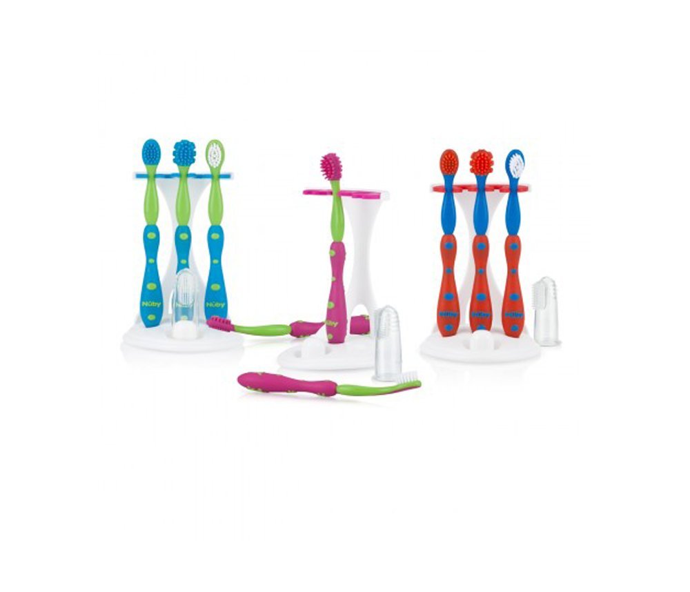 Comprar NUBY de dientes y encías Cuidado Juego de 5 piezas para bebés y niños pequeños Carne Cepillo de dientes cepillo de dientes con soporte: Amazon.es: Salud y ...